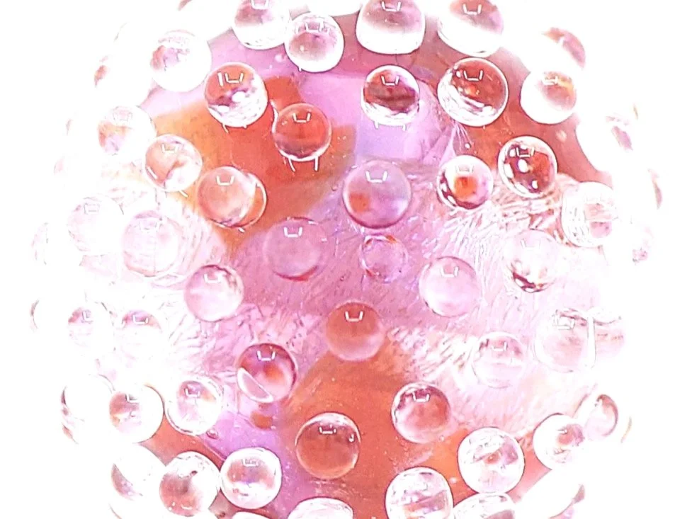 Inspired by nature, Natalie’s work is an exploration of natural forms, the play of light, and ideas about lightness, fragility and impermanence. She approaches each piece like it’s a watercolour painting, layering washes of transparent and translucent colours, fragments of shimmering 24K gold leaf, silver foil or dichroic glass, tiny opaque dots and fine lines, and delicate floral or abstract murrine to create rich, complex compositions.
